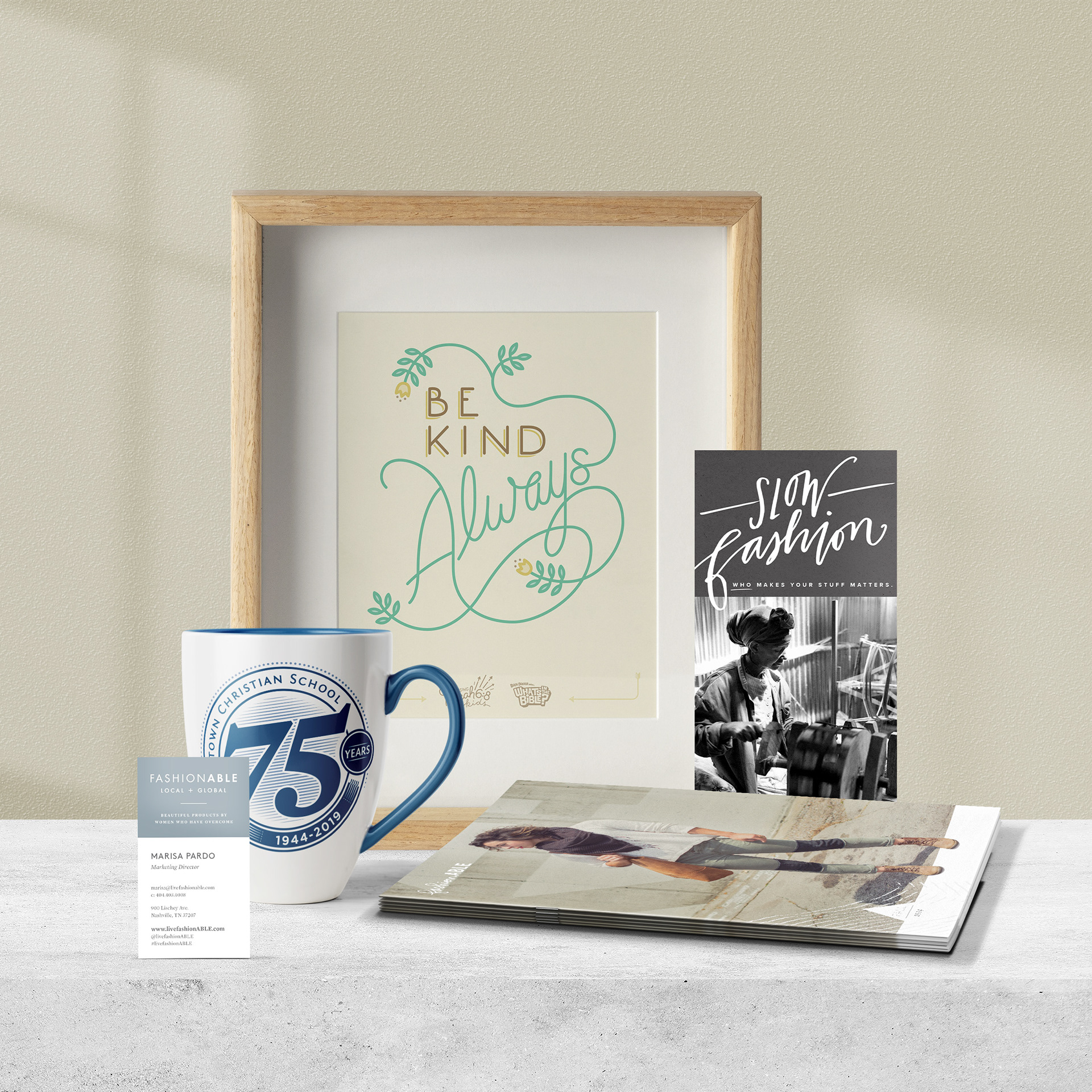 Over 7 years, I designed everything from web and social media graphics, business cards, and line sheets, to lookbooks and product hangtags, bringing this fledgling ethical fashion company to the forefront of the slow fashion movement.